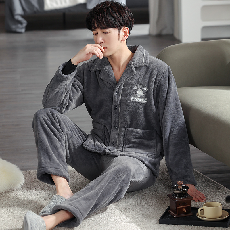 珊瑚绒家居服套装 保暖睡衣冬季 男士 法兰绒加厚加绒2025年新款 男款