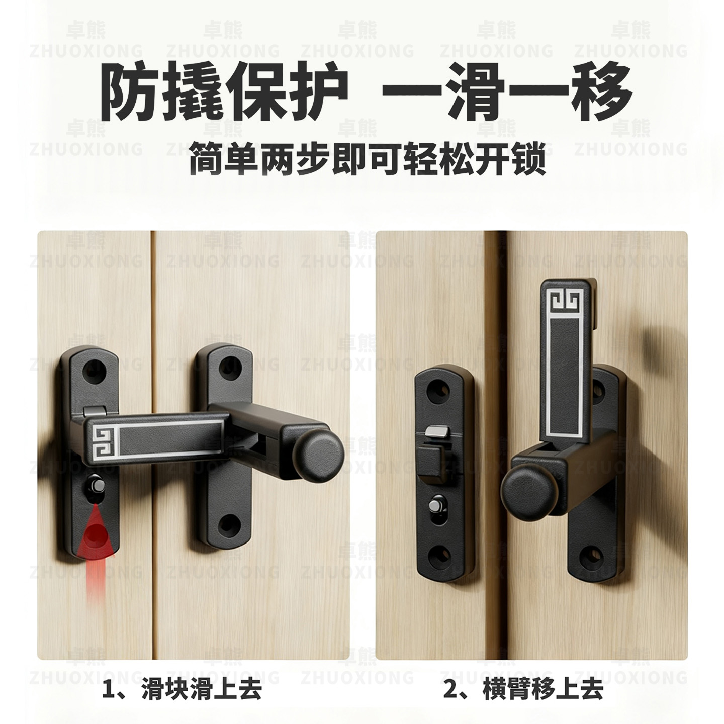 门不平插销平移推拉门免打孔搭扣防盗门内反锁可调节锁扣门锁卡扣