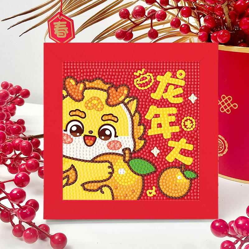 新年钻石贴画儿童手工diy材料龙年过年礼物幼儿园学生满钻粘贴画