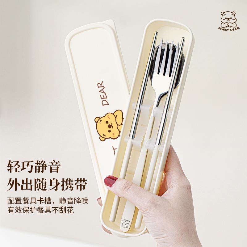 304不锈钢奶油便携筷子勺子套装 上班族户外餐具盒单人筷勺收纳盒