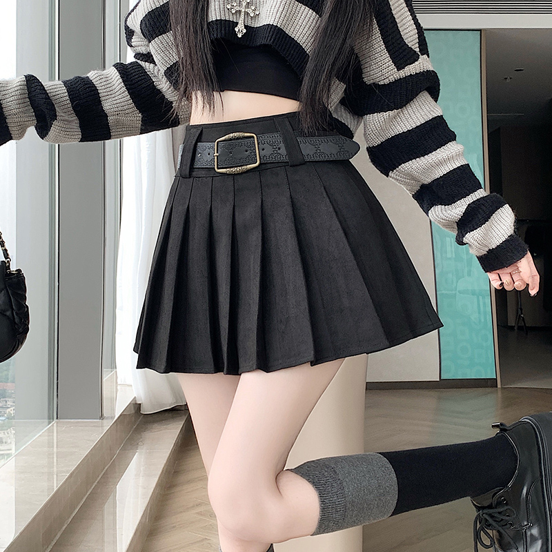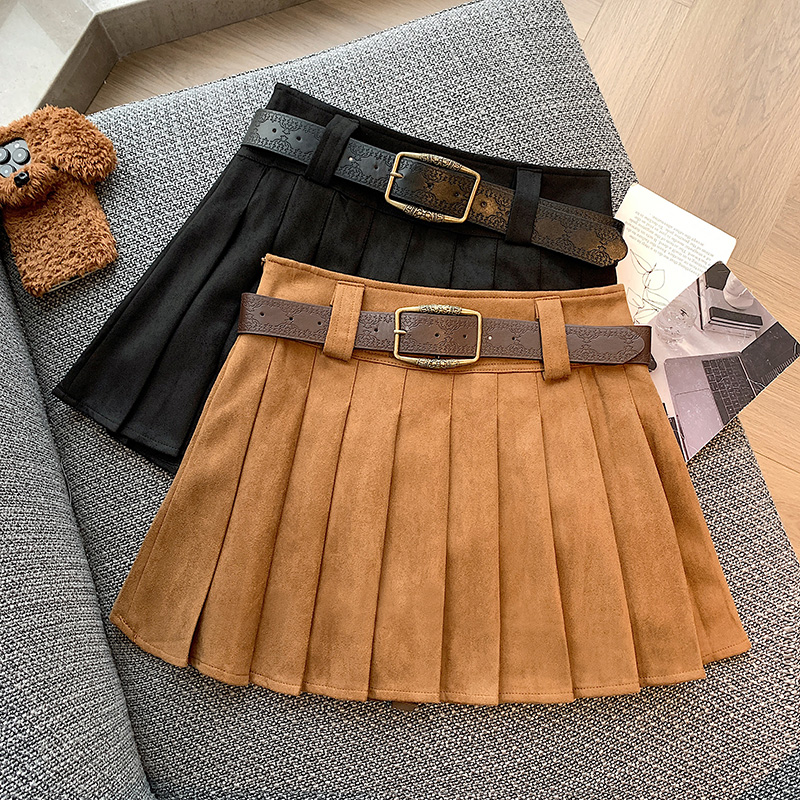 咖色鹿皮绒半身裙女秋冬季 高腰a字短裙显瘦百褶裙 2025新款