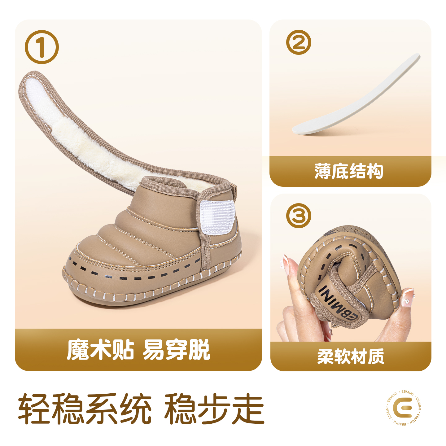 冬季 英贝米尼宝宝鞋 一岁幼儿棉鞋 加绒保暖婴儿室内鞋 子小月龄冬鞋