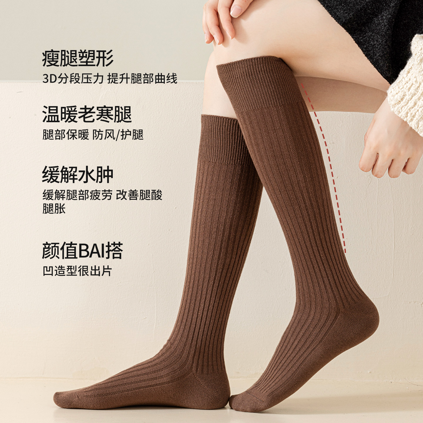 过膝袜子女秋冬款 纯棉纱线长筒袜加长保暖高筒防滑护膝大腿袜春秋