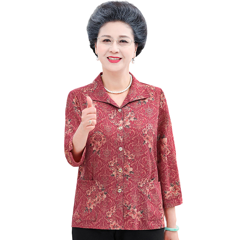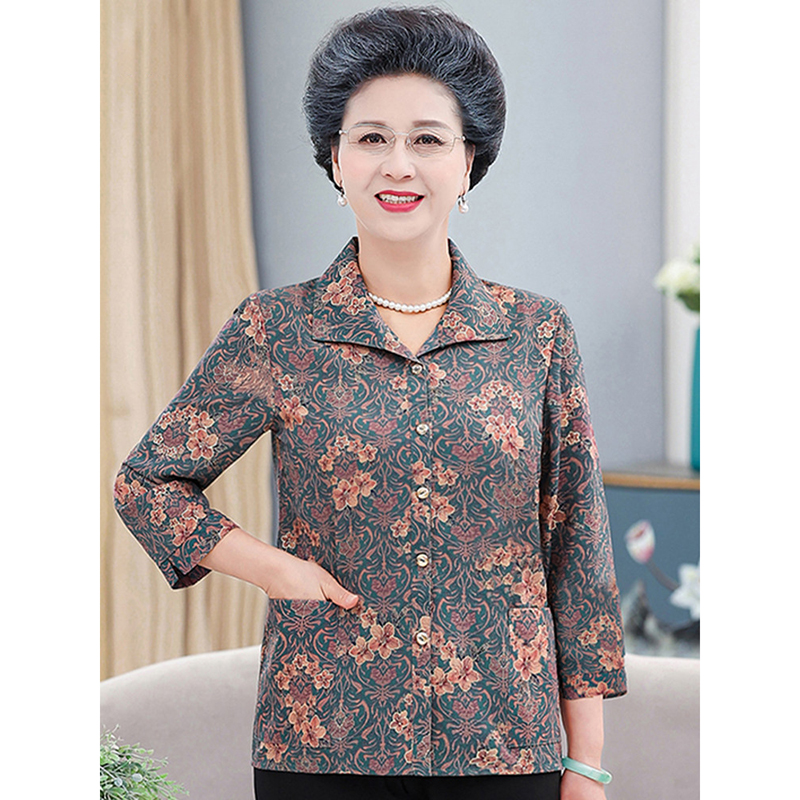 套妈妈开衫 中老年人夏装 休闲装 女奶奶七分袖 老人太太衣服上新 衬衫