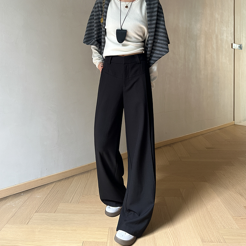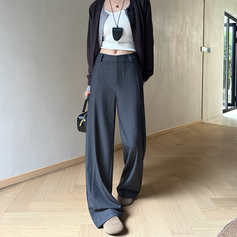 感职业直筒裤 灰色天丝羊毛高腰西装 高级垂感休闲裤 女春秋季 阔腿裤