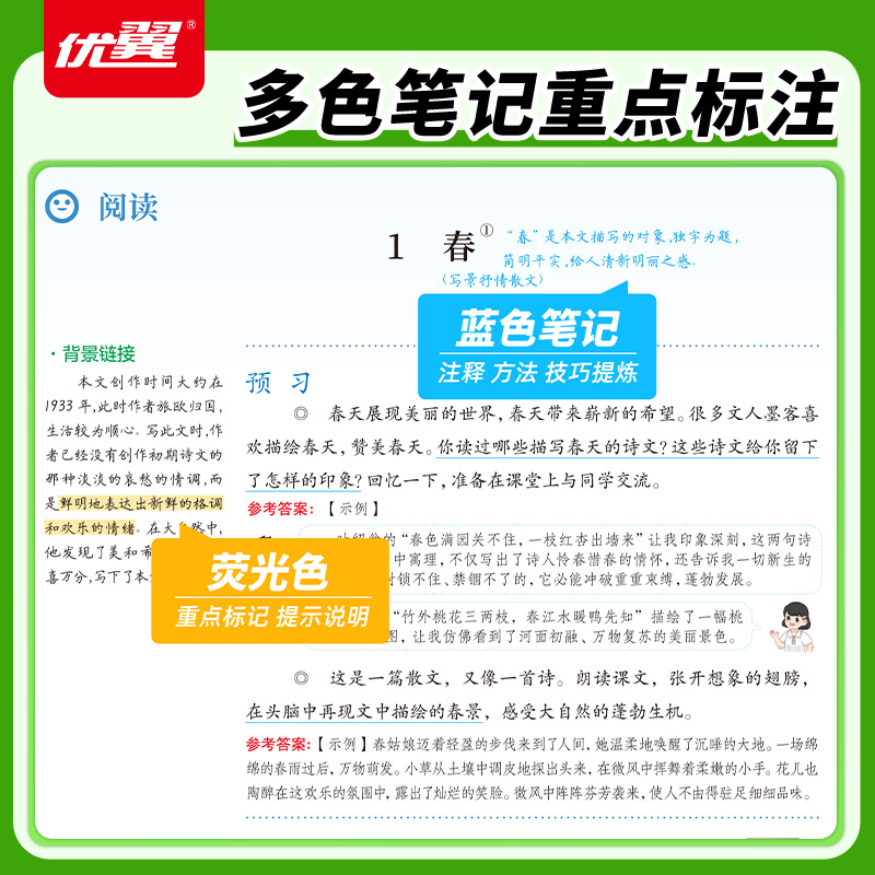 2025秋优翼新领程涂重点初中七年级八年级上册语文人教版 同步教材完全解读学霸课堂笔记基础知识预习复习工具书赠记重点手册