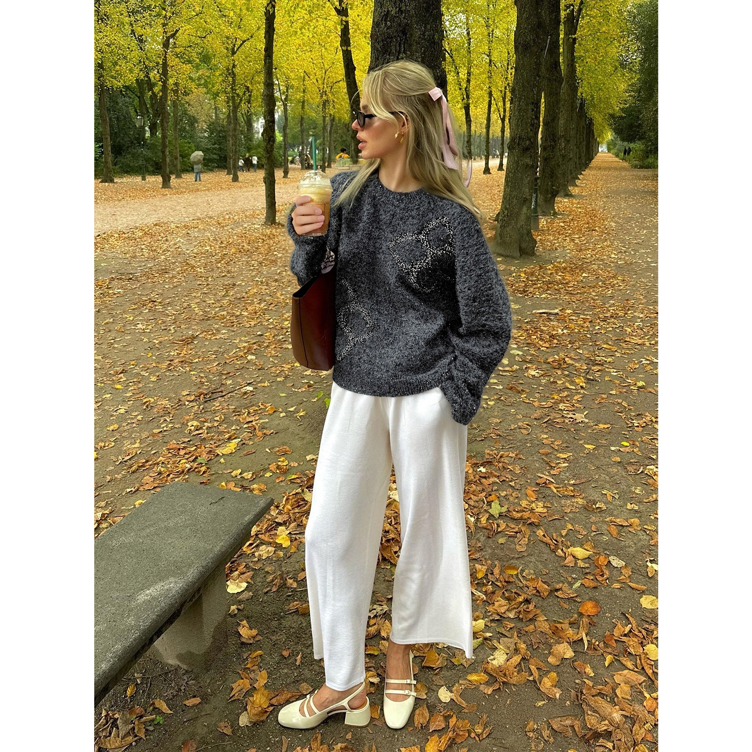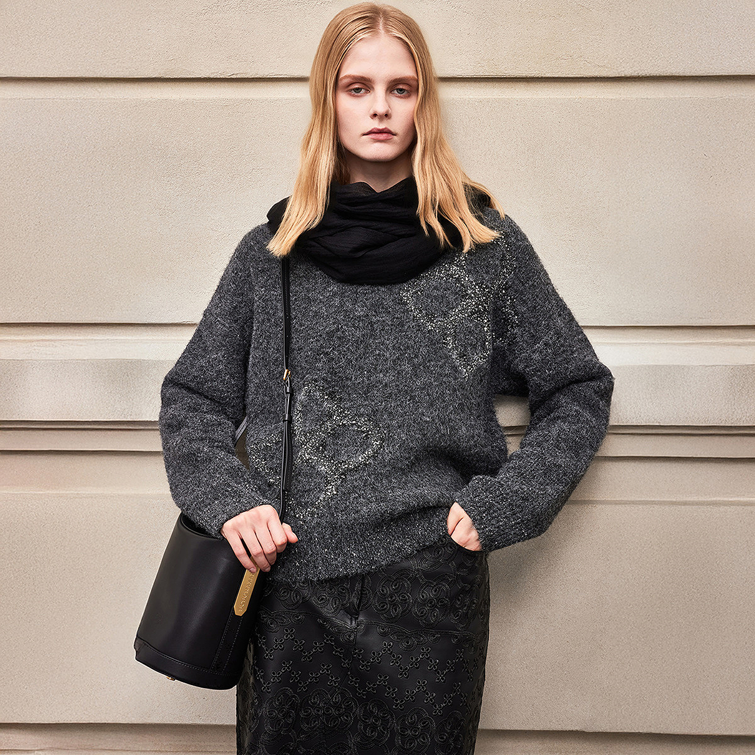 饰套头针织衫 BCBG25早秋新款 Logo提花亮片装 百搭经典 设计感时尚