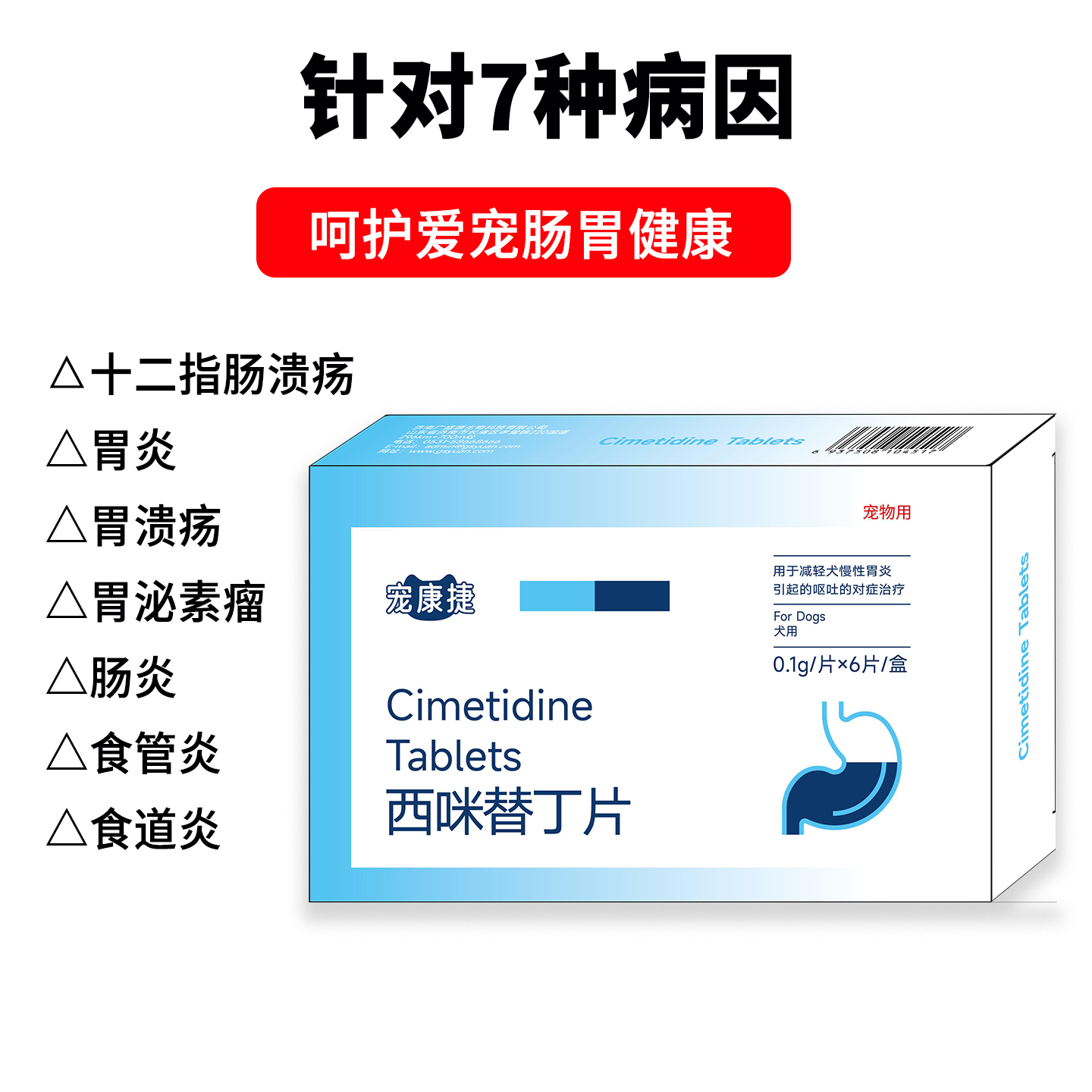 宠物猫咪泰迪比熊狗狗止吐黄水白沫呕吐腹泻拉稀肠胃调理西咪替丁