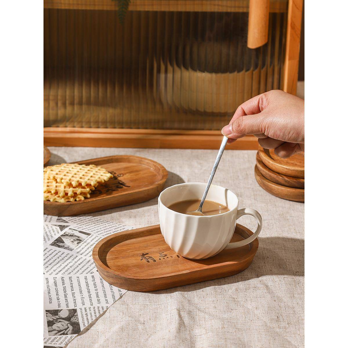 捷安玺茶盘家用2025新款 小型托盘茶杯茶托盘茶具收纳盘子实木餐盘