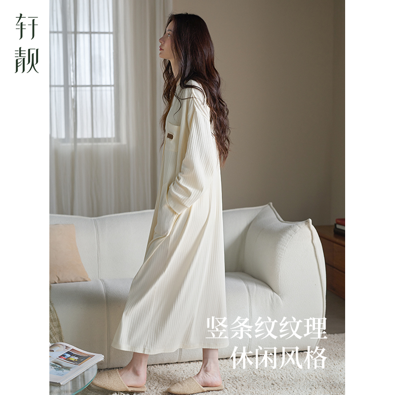 睡衣超长裙大码 纯棉长袖 家居服连衣裙 睡裙女士春秋季 轩靓2025新款