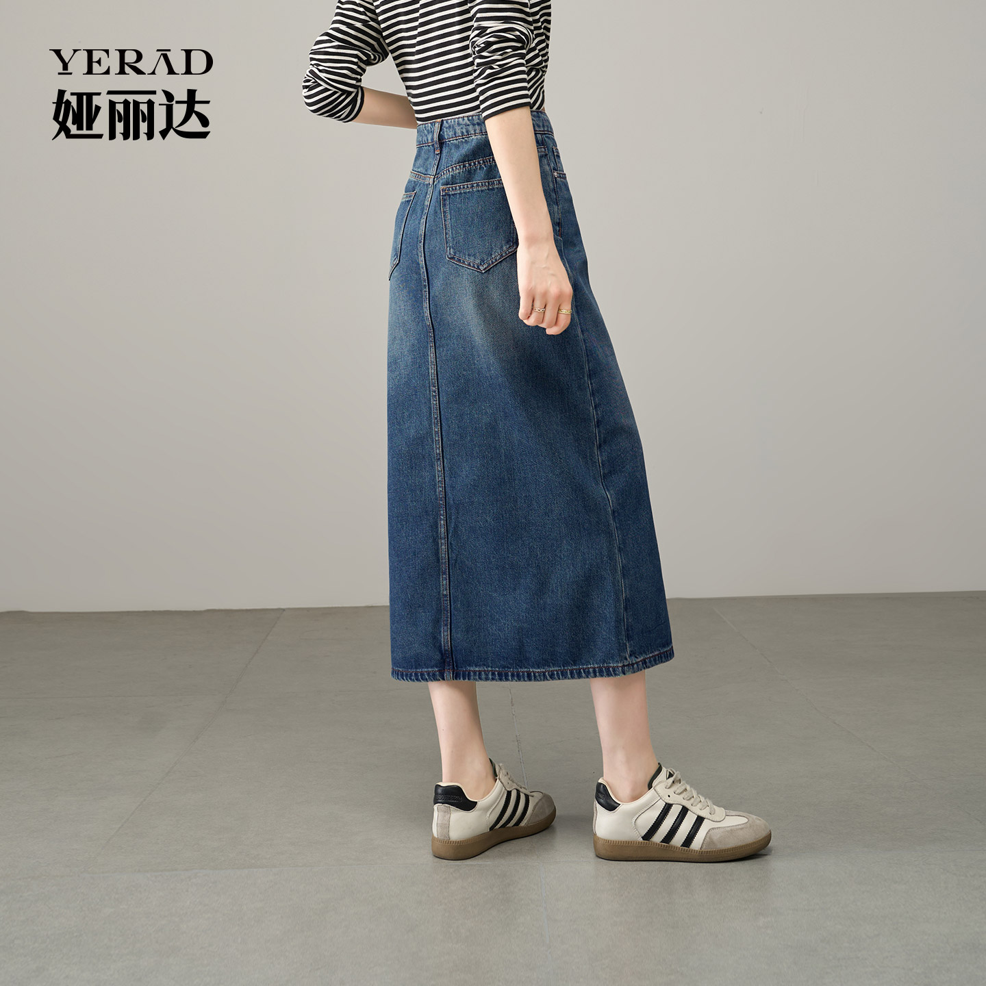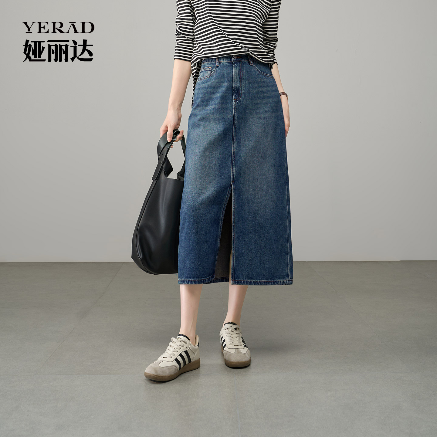 及膝裙子 好搭牛仔半身裙女前开叉中长款 娅丽达2025秋季 新款
