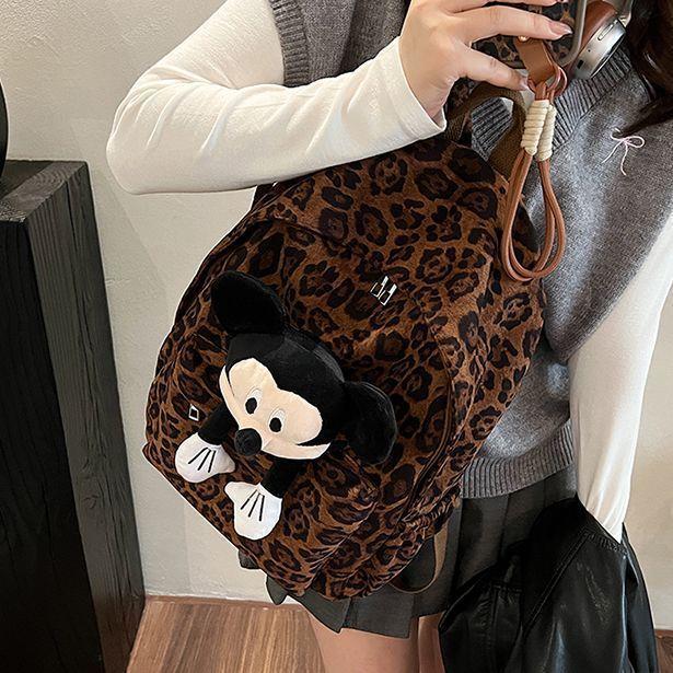 双肩包 休闲学院风大容量女士米老鼠卡通豹纹秋冬新款 2025春季 爆款