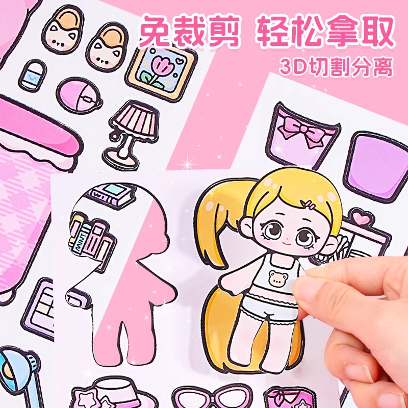 小麻薯女孩安静书新款 饰创意素材贴儿童解压益智玩具手工制作磁力贴安静书 秘境来信免裁剪立体书diy贴纸装