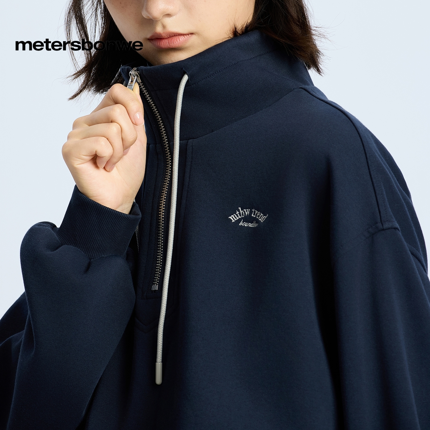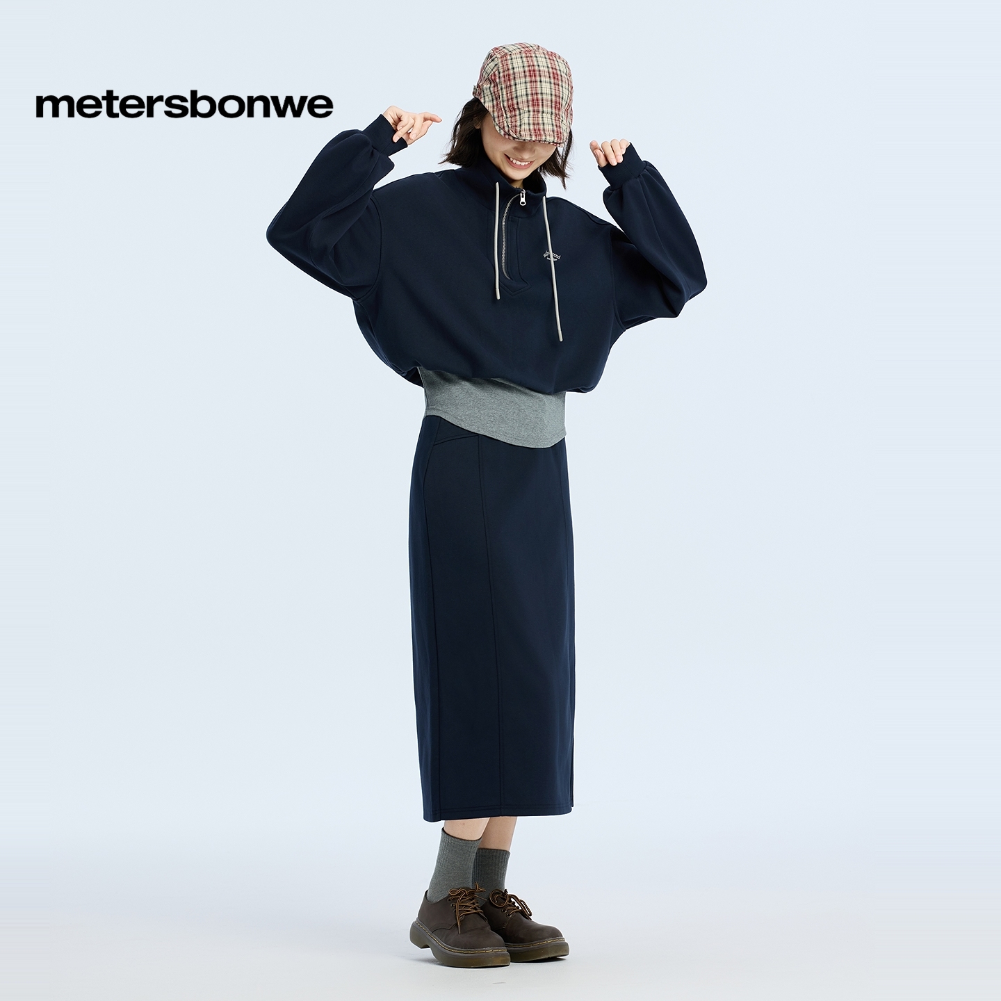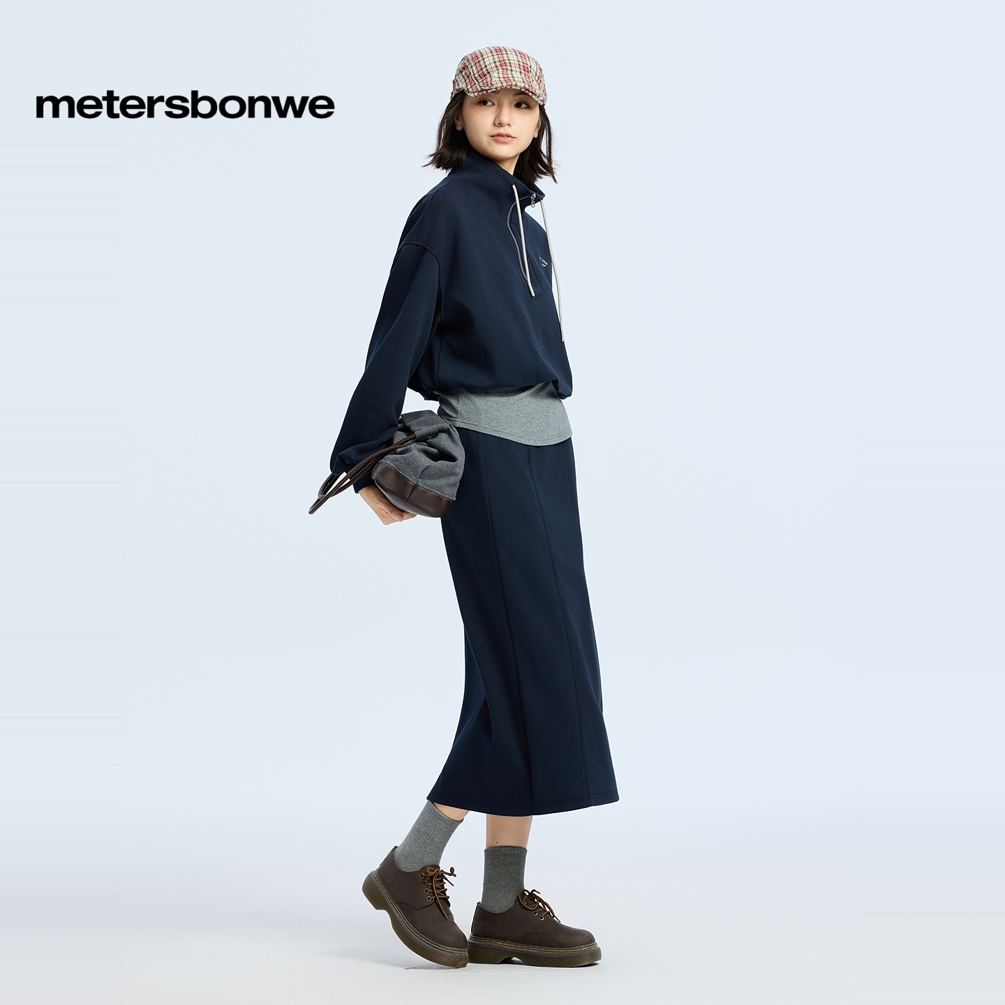 半开立领上衣 潮流休闲假两件修身 美特斯邦威卫衣女2025冬季 新款