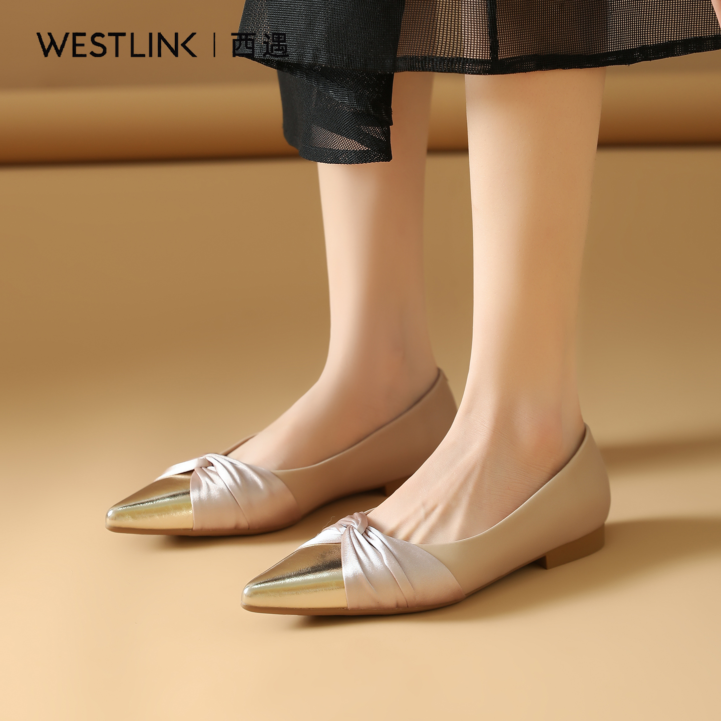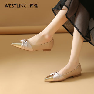 女鞋 西遇平底单鞋 香槟色尖头气质配裙子绝美瓢鞋 新款 女2025秋季