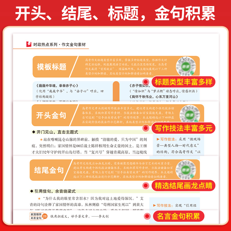 意读高中新学期作文积累2026新版 时政热点金句素材高一高二高三通用提分宝典人民日报语文专项训练作文书范文精选高考优秀满分写作