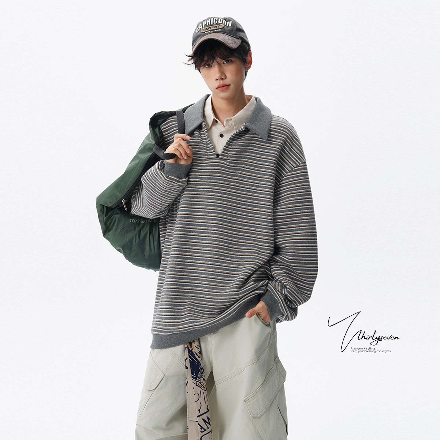 男黑色高级感条纹衬衣休闲寸衫 衬衫 长袖 Navigare意大利小帆船秋季