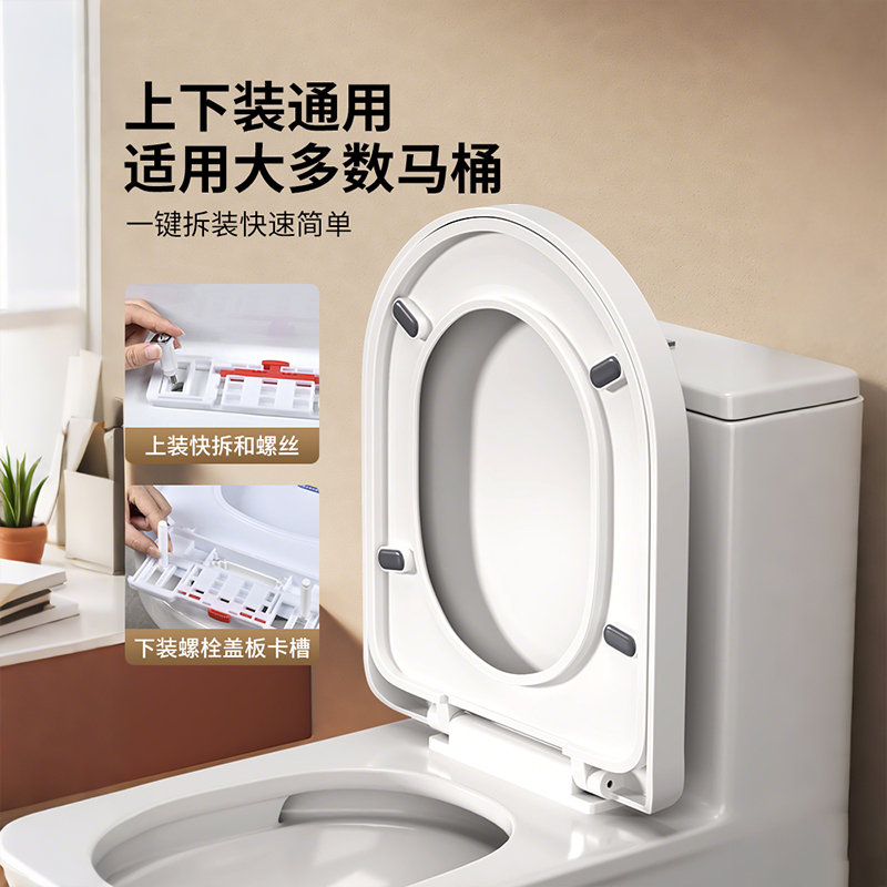 马桶盖家用通用加厚坐便盖板老旧式 UVO型厕所子母坐便圈盖子配件