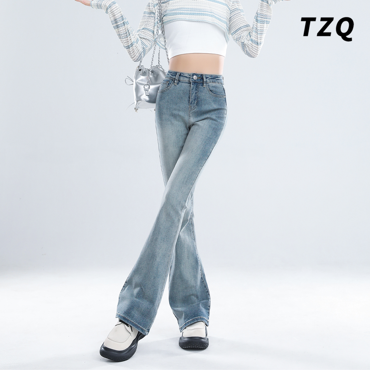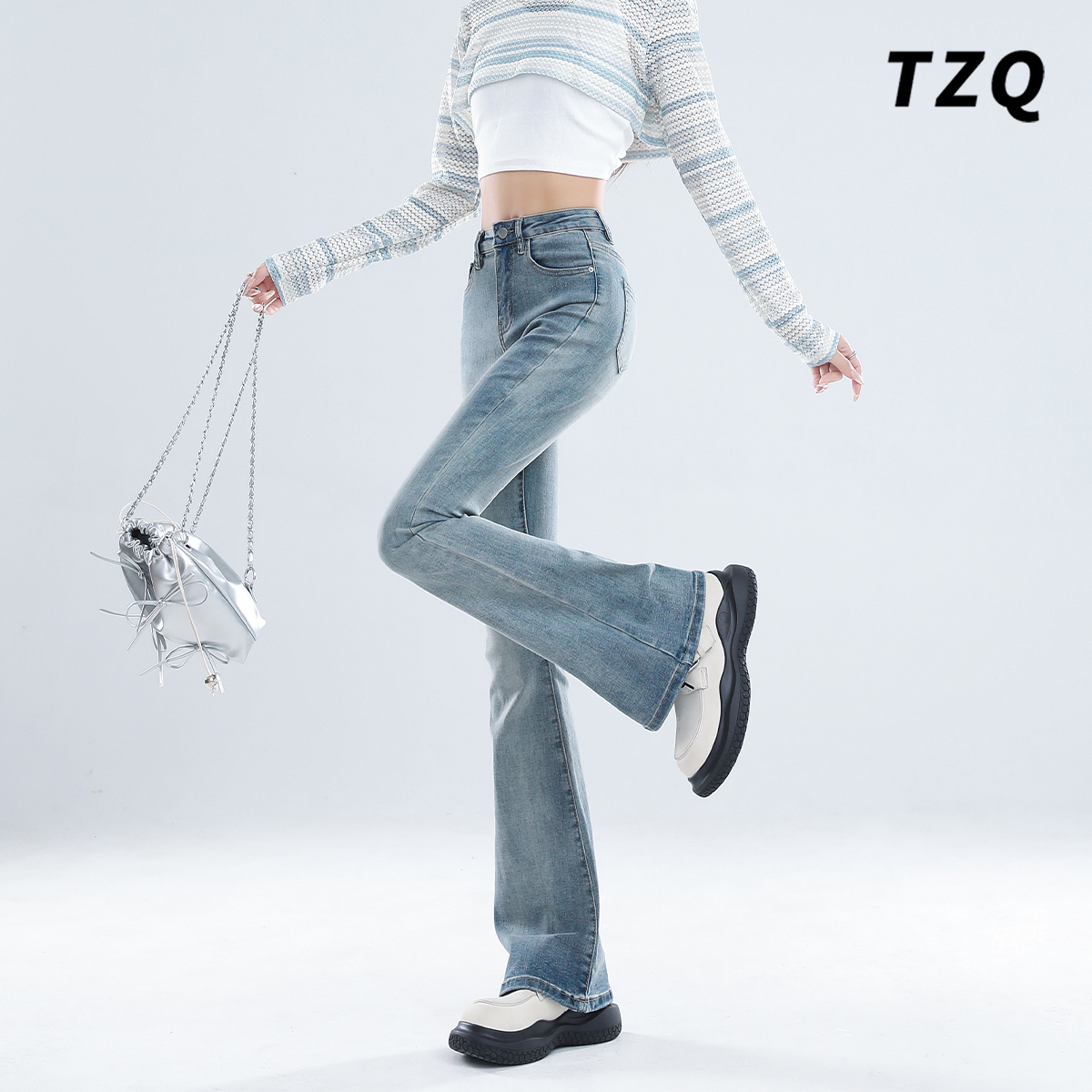 微喇牛仔裤 辣妹显瘦弹力喇叭马蹄裤 女秋季 时尚 新款 怀旧蓝高腰修身
