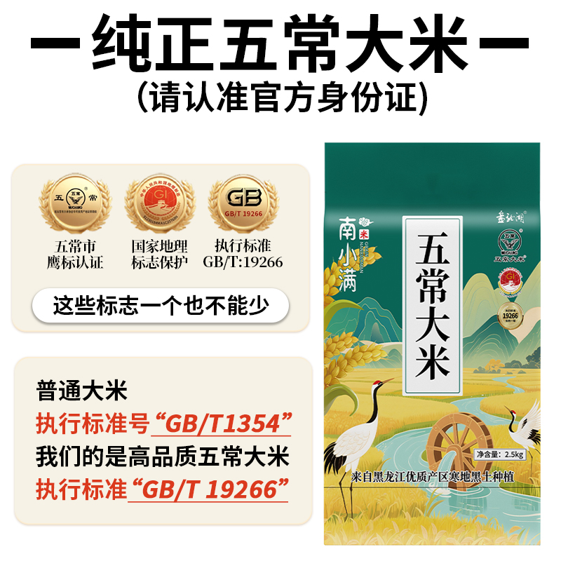 正宗东北五常大米2.5kg香米5斤大米粳米优质新米谷米生态真空一季