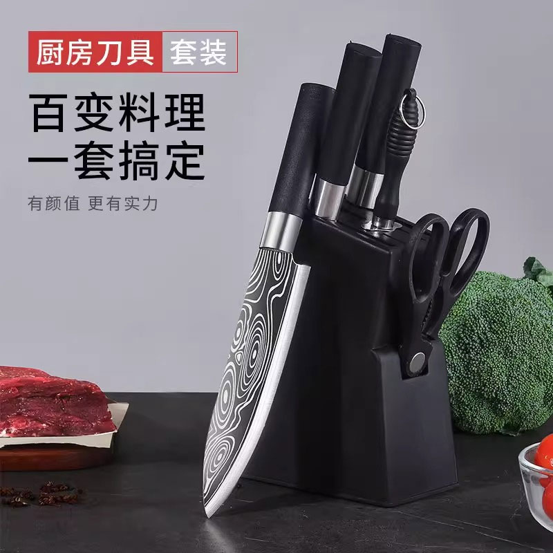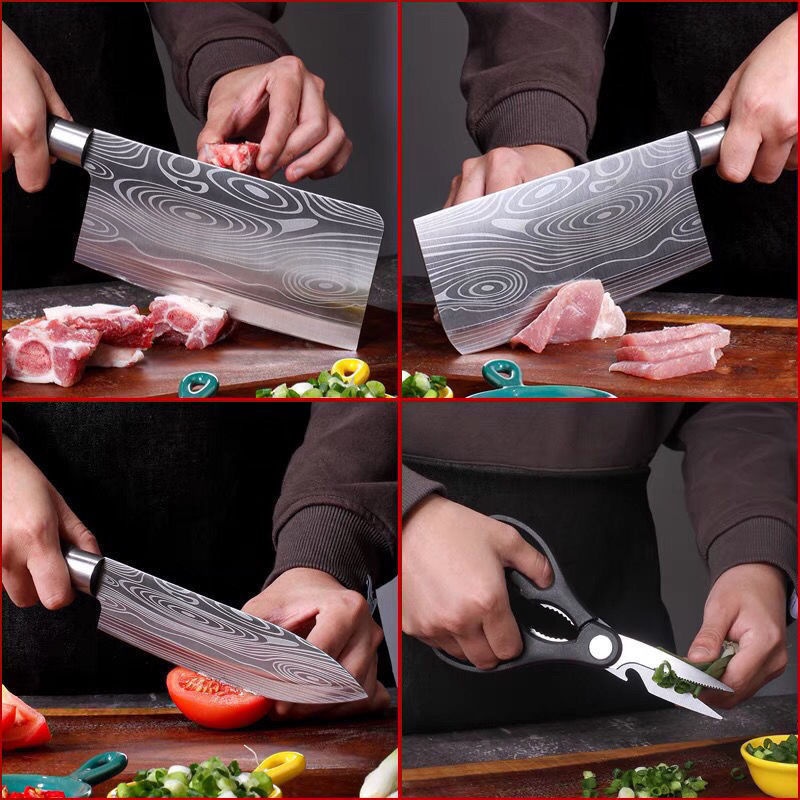 不锈钢家用阳江切菜刀厨师辅食厨具砍骨刀大马士革纹套刀刀具钢刀