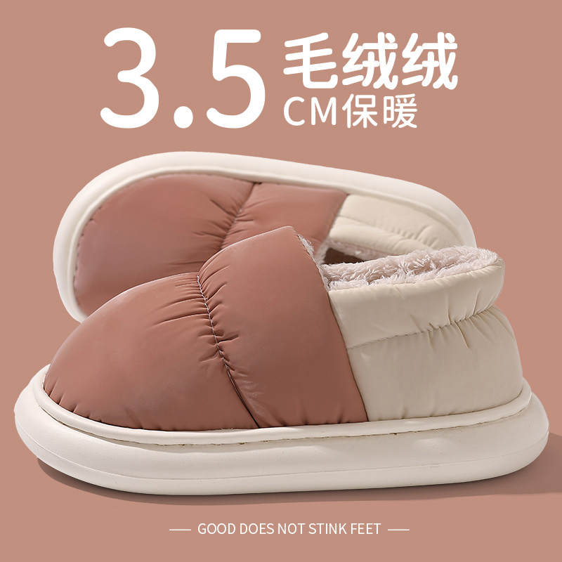 女棉鞋 可外穿加绒室内家居保暖厚底防水包跟月子鞋 女秋冬季 棉拖鞋