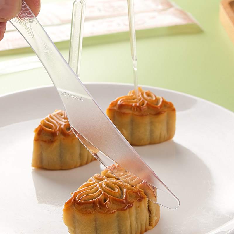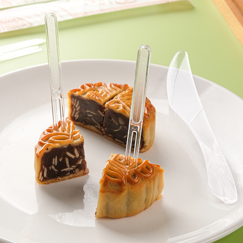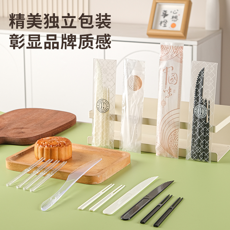 月饼刀叉一次性套装 100套 高档餐具塑料中秋切月饼1刀4叉独立包装