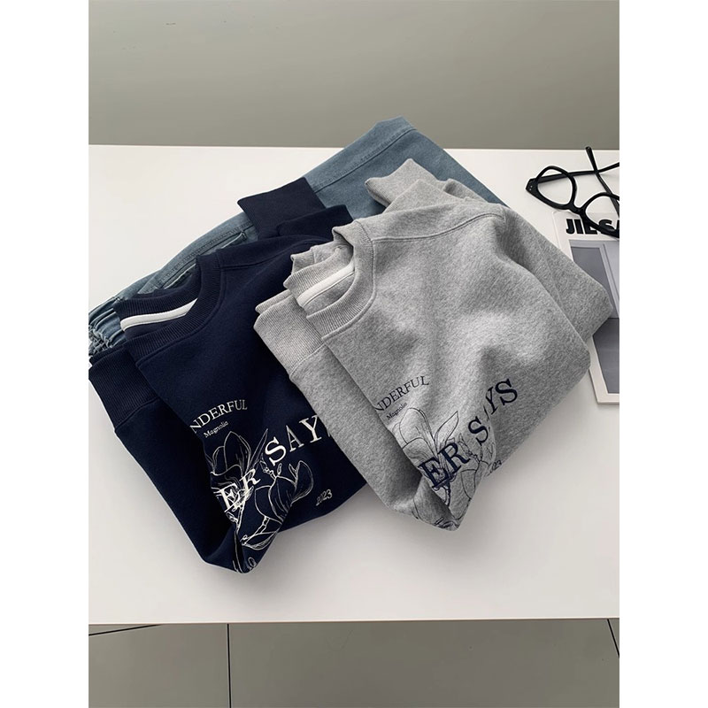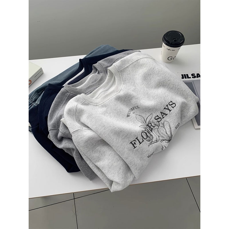 新款 宽松设计感印花无帽卫衣女秋冬季 200斤胖mm上衣外套 大码 美式