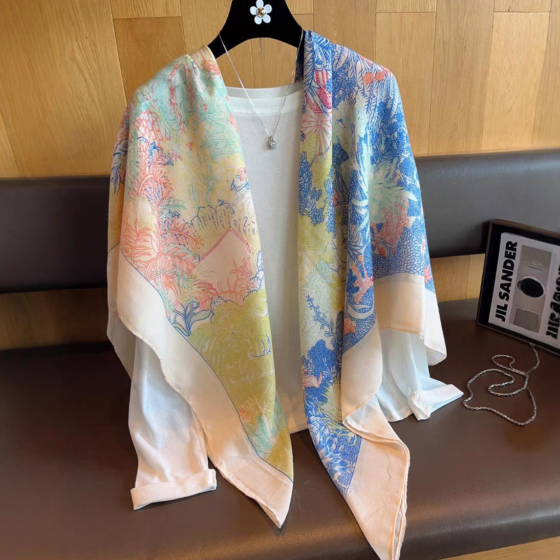 沙漠旅游纯色披肩女外搭薄款 丝巾人鱼姬色珠光纱巾空调房头巾围巾