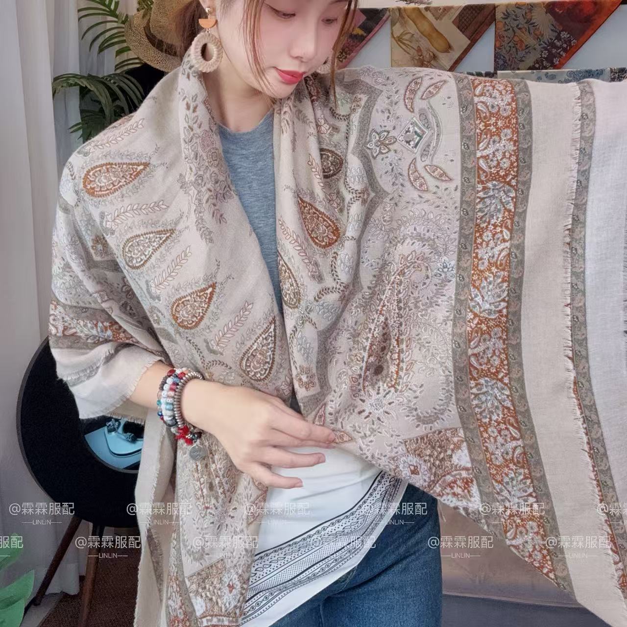复古中国风烫金印花棉麻手感围巾防晒旅游拍照外搭披肩装 饰丝巾潮