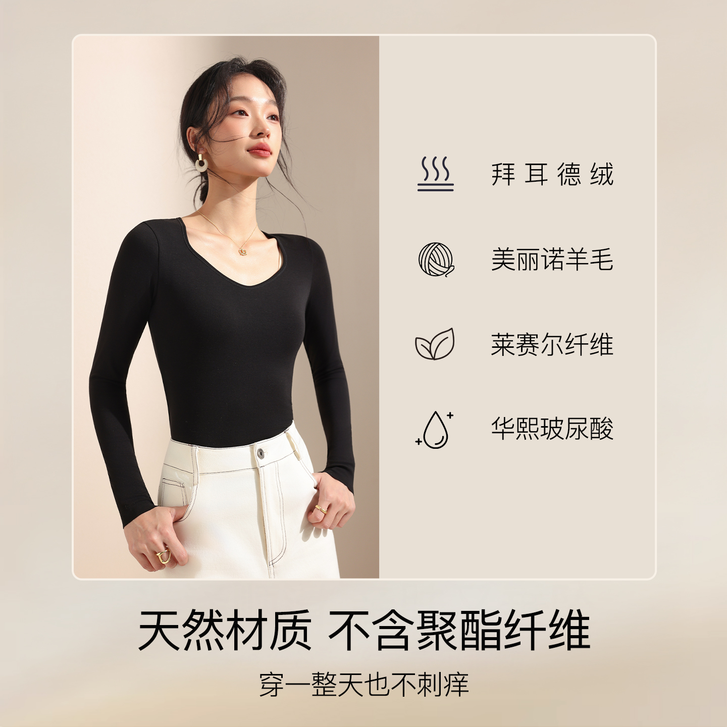 冬针织高级感巨好看打底衫 猫人V领上衣女早秋内搭正肩t恤修身 长袖