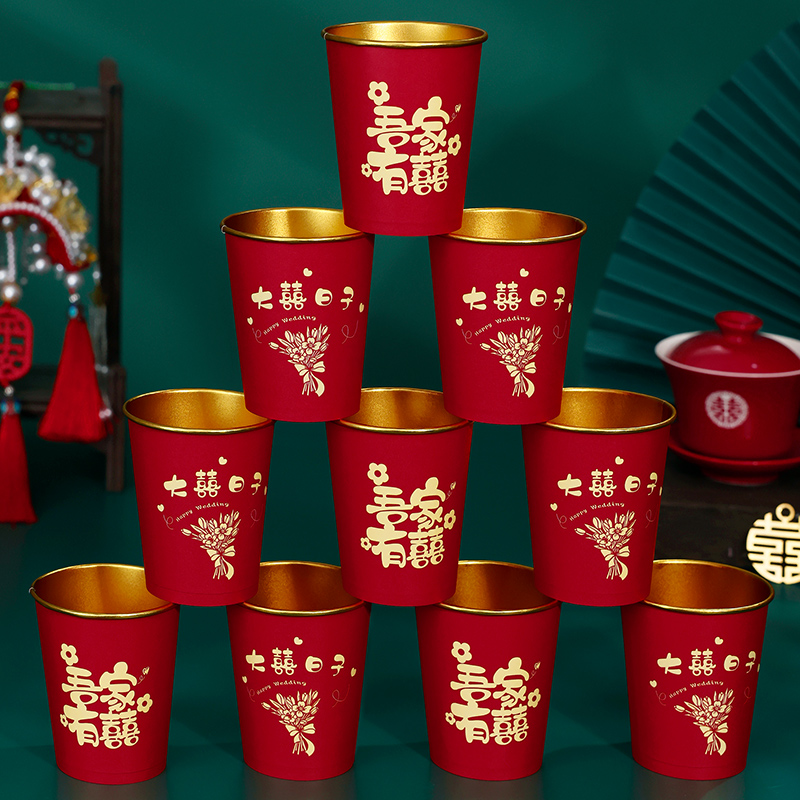 结婚红色茶杯托盘创意礼盒婚礼喜糖盘子订婚礼品套组婚庆用品大全