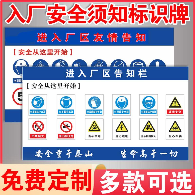 入厂安全须知标识牌进入厂区注意事项警示牌厂区安全标识重大危险源区警示警告牌标语工厂车间安全告知牌墙贴