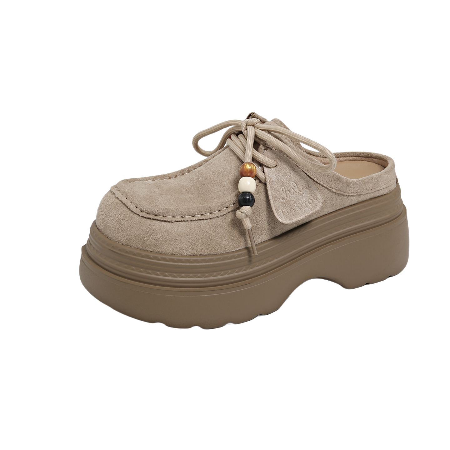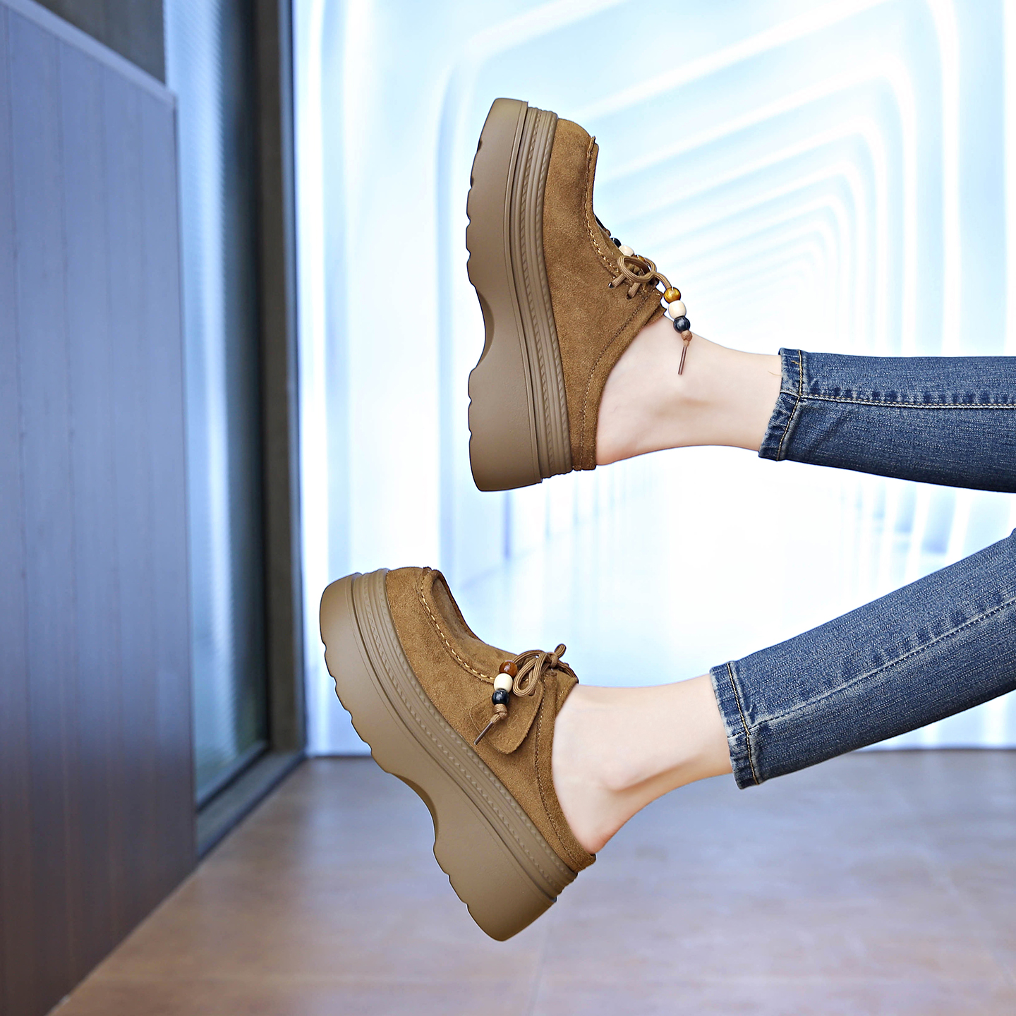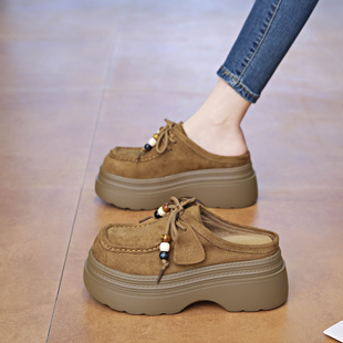 百搭超火懒人一脚蹬勃肯鞋 厚底增高包头半拖鞋 女外穿2025春秋新款