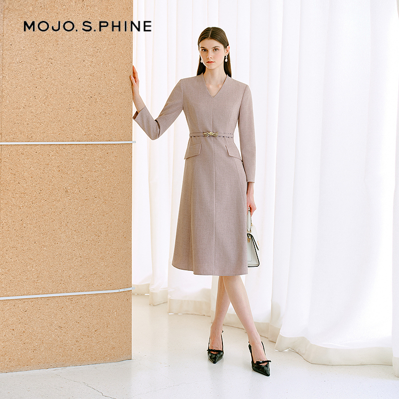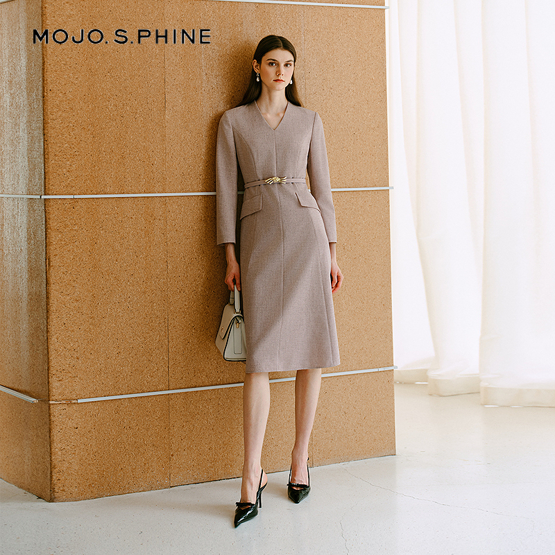 MOJO莫佐2025冬新款 气质收腰职场通勤连衣裙 柔美干练连衣裙女时尚