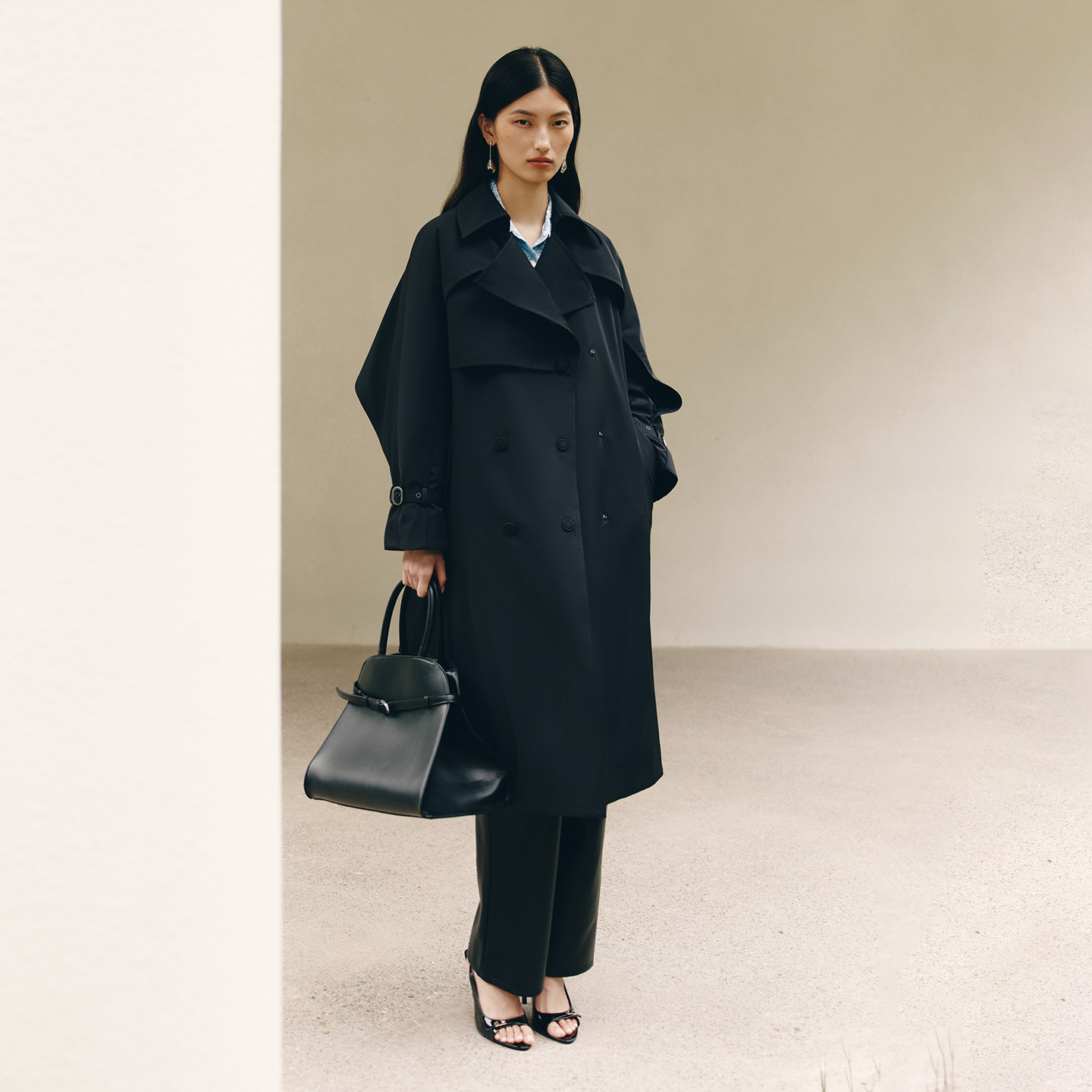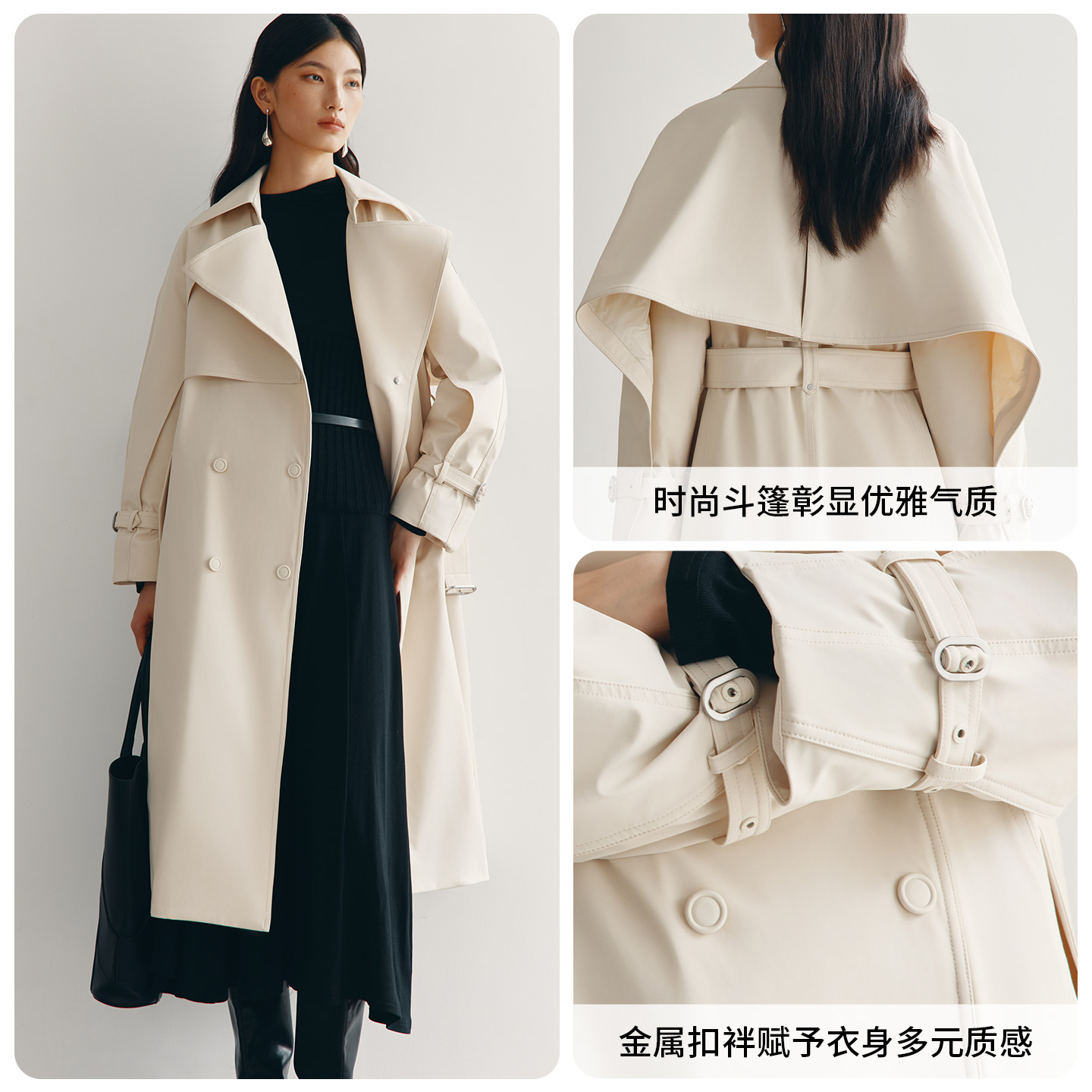 外套 斗篷设计金属扣袢气质长款 艾莱依2025新款 风衣鹅绒服女士时尚