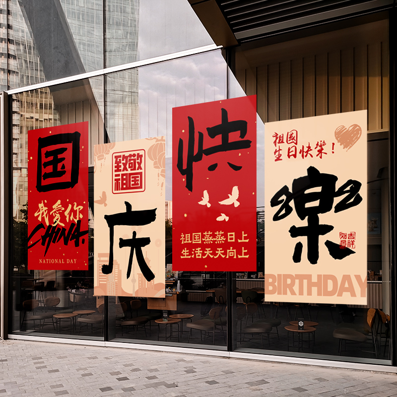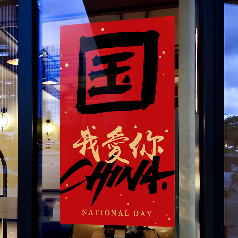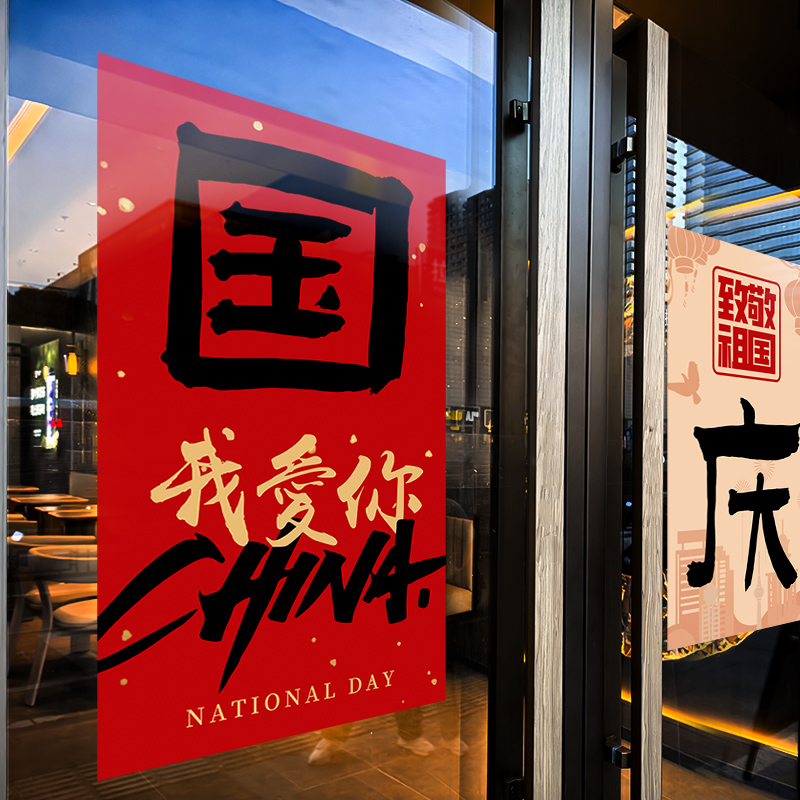 国庆节装 扮店铺橱窗静电玻璃贴门贴纸 饰布置窗贴商场创意门帘装