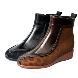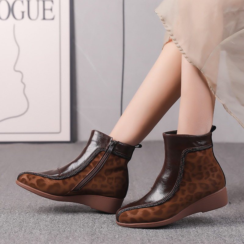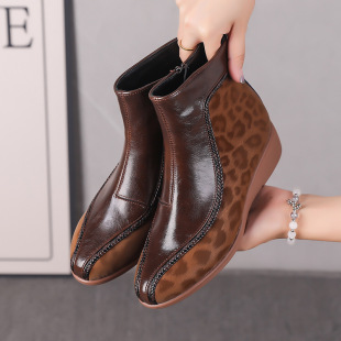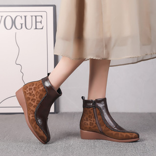 女鞋 短靴时尚 41到43秋冬季 真皮中跟坡跟妈妈鞋 女靴42 2025新款 大码