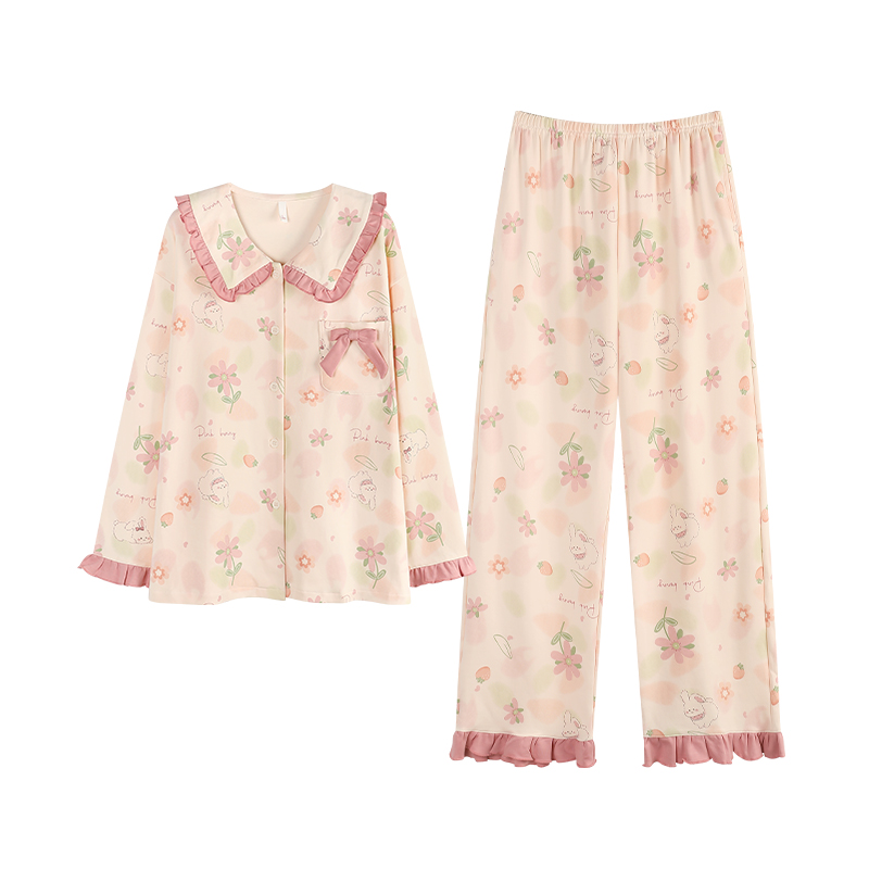 少女粉色公主风全棉家居服套装 2025新款 长袖 猫人纯棉睡衣女春秋款