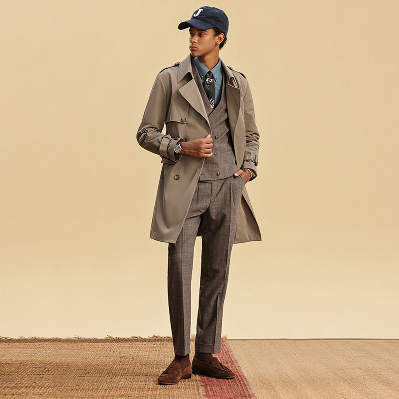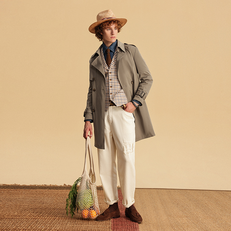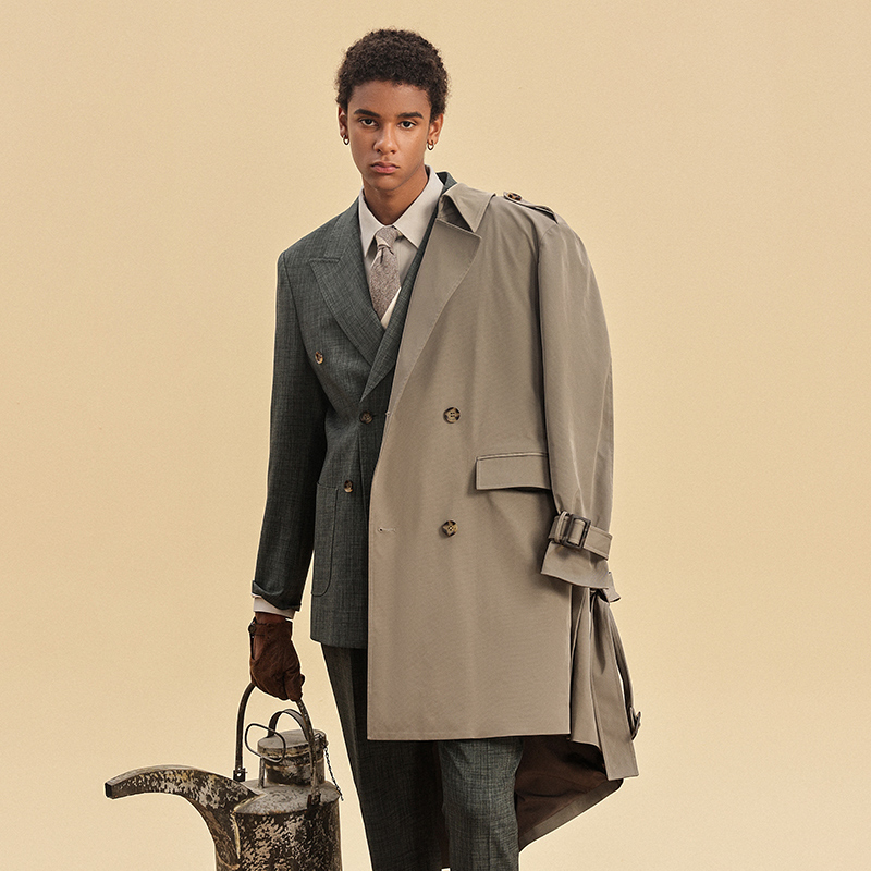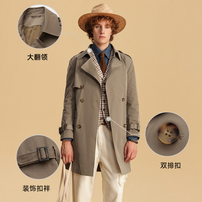 风衣外套SCW4208 浅咖色翻领双排扣男士 JDV春夏新品 商场同款
