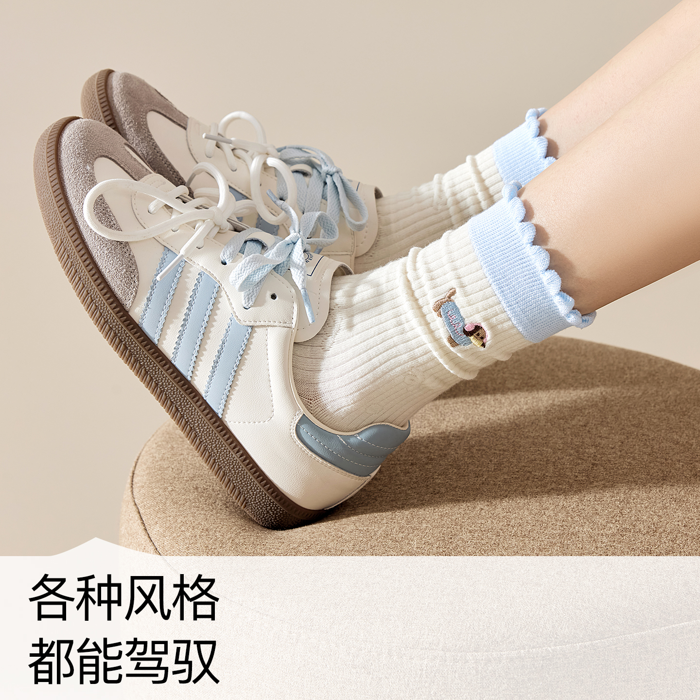 可爱袜子女款 纯棉中筒堆堆袜白色防臭吸汗透气抗菌花边袜 2025新款