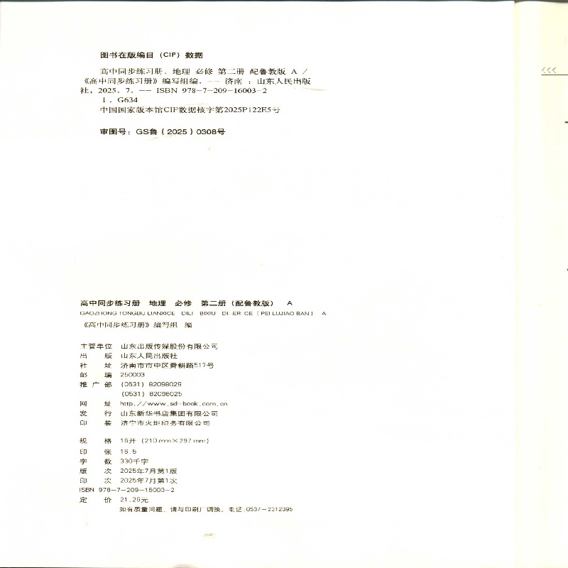 社A版 2025地理必修2二高中同步练习配鲁教版 山东人民出版