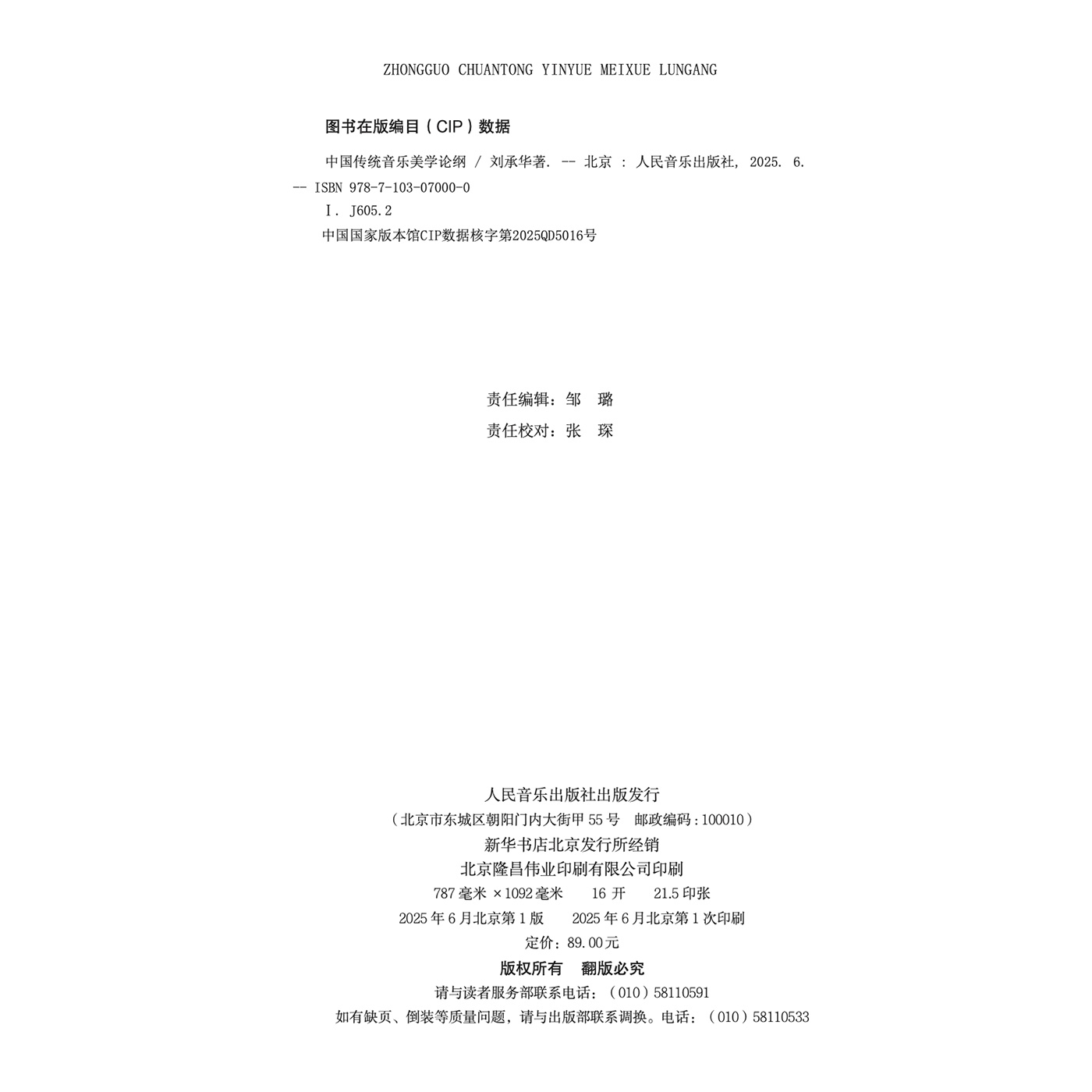 刘承华 社 中国传统音乐美学论纲 人民音乐出版