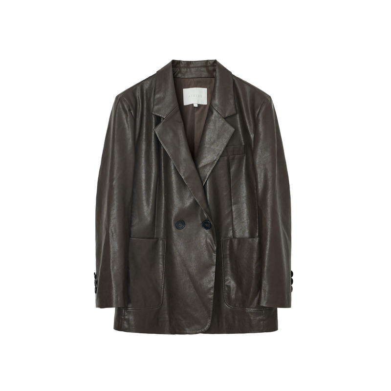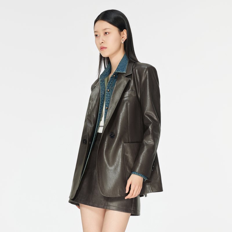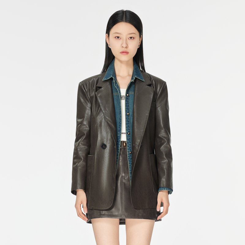 COCOBELLA高智感青果领老钱丝光缎面西装 女苔藓绿通勤外套SI7019