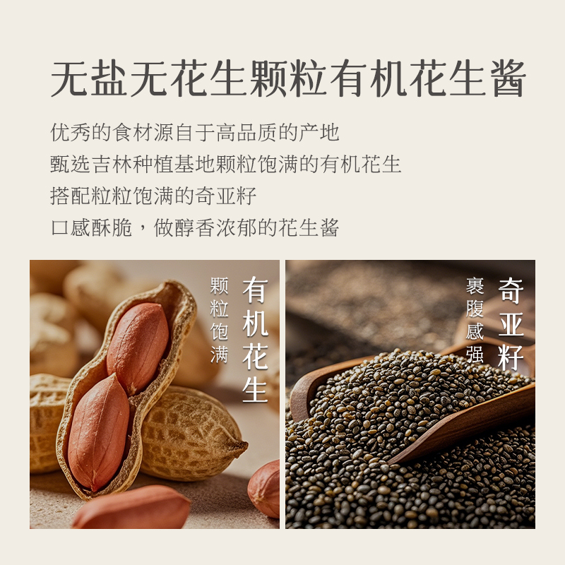 格简顿有机奇亚籽花生酱不加白糖无添加盐早餐健身减脂餐调味酱