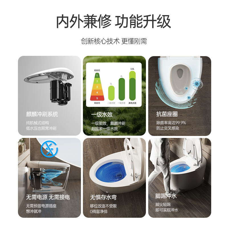 猛犸象创意蛋形马桶空气能麒麟冲刷脚踢冲水存水弯可用 国家补贴