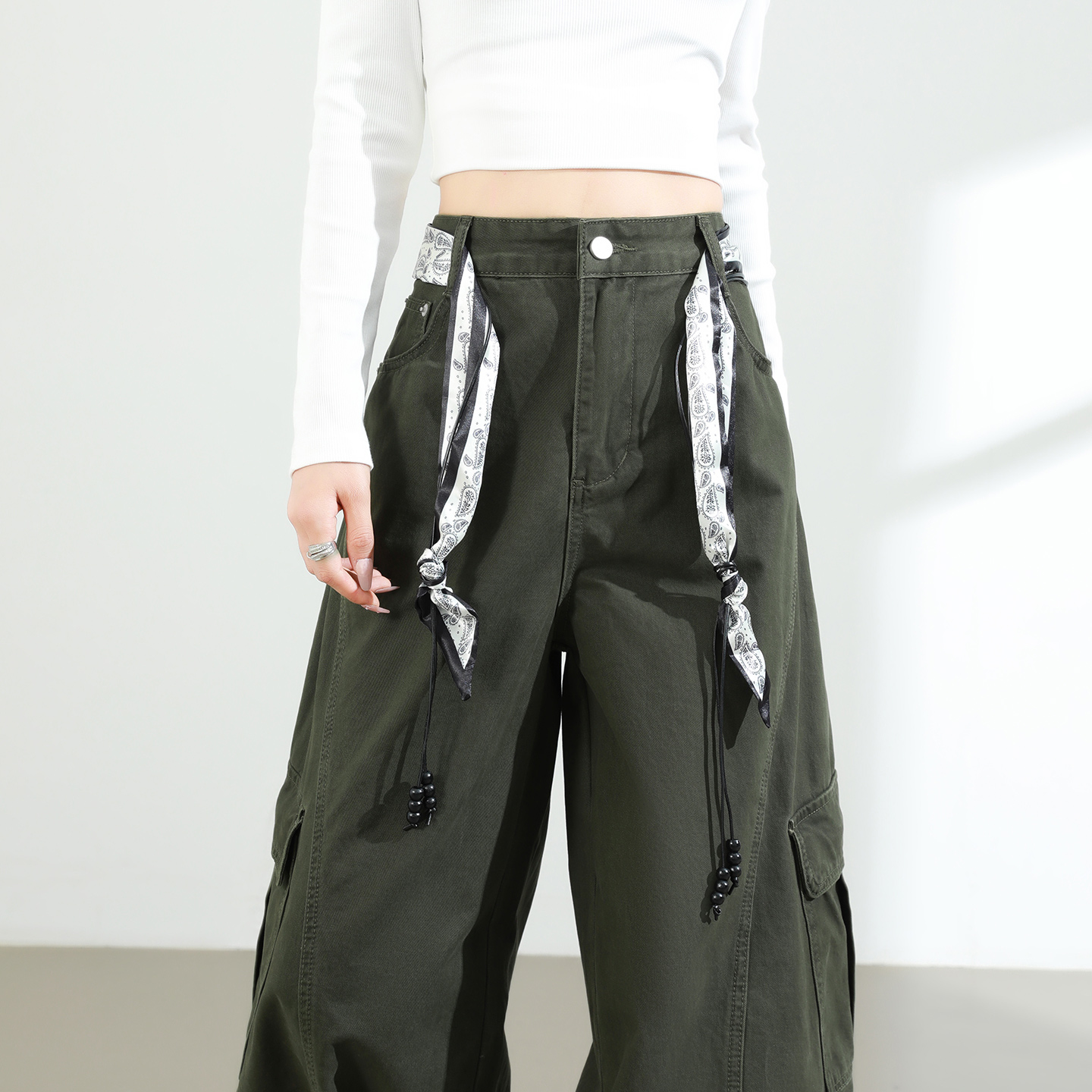 弯刀工装 高腰宽显瘦松丝巾腰带运动阔腿裤 裤 2025新款 女春秋季 美式
