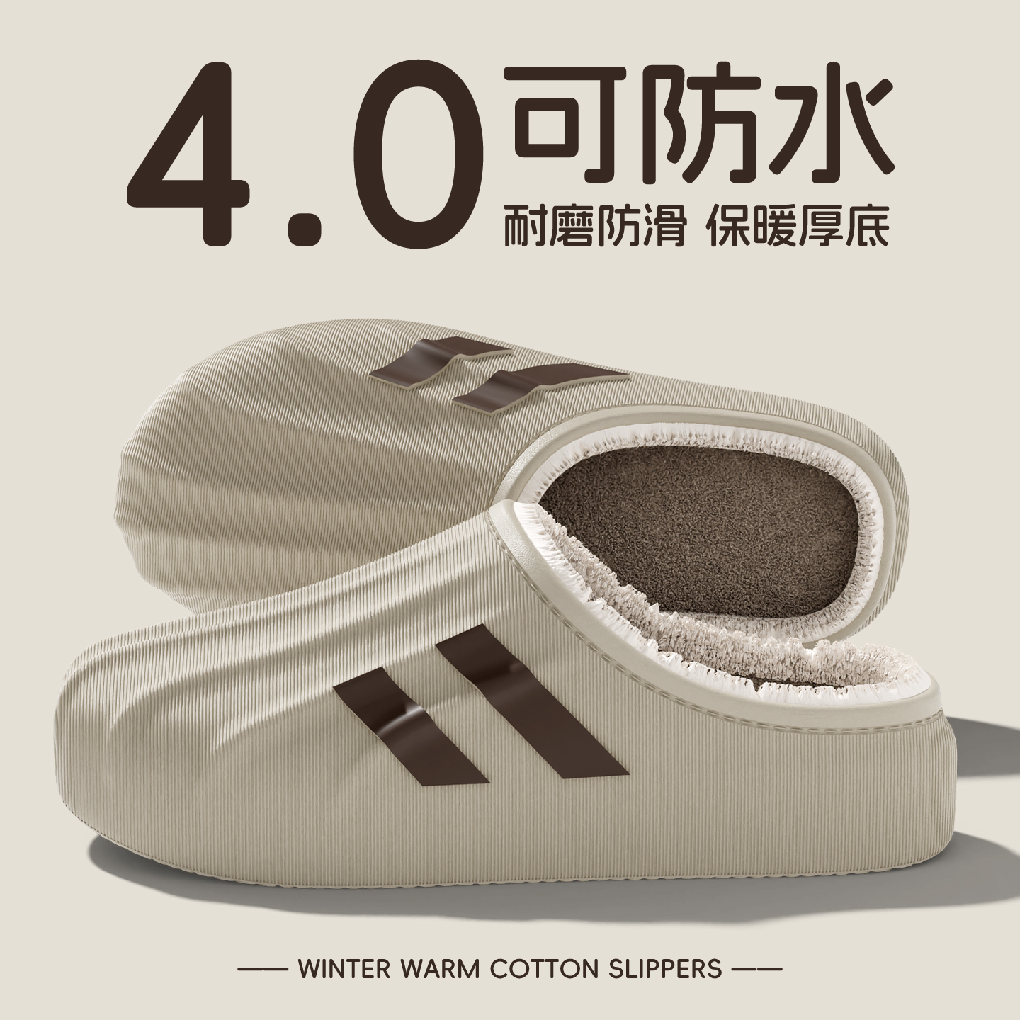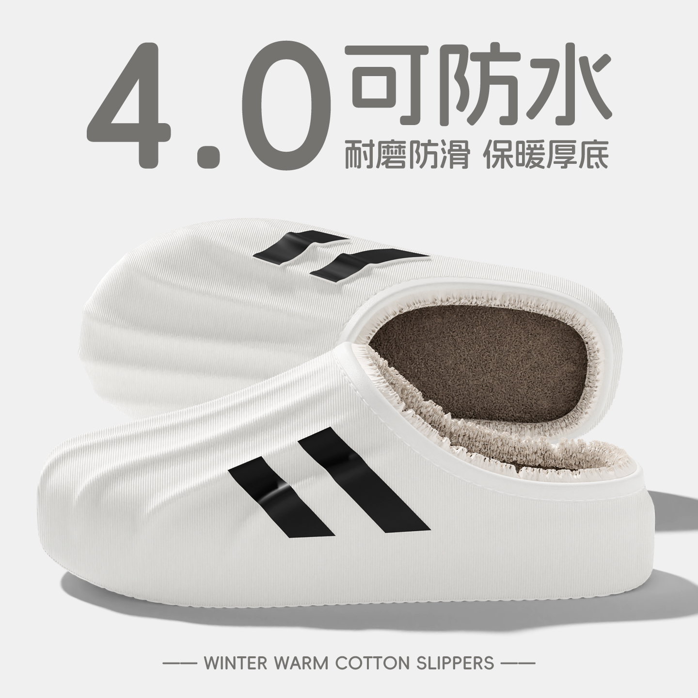 室内家居防滑厚底保暖毛绒防臭抑菌拖鞋 2025新款 男冬季 防水棉拖鞋