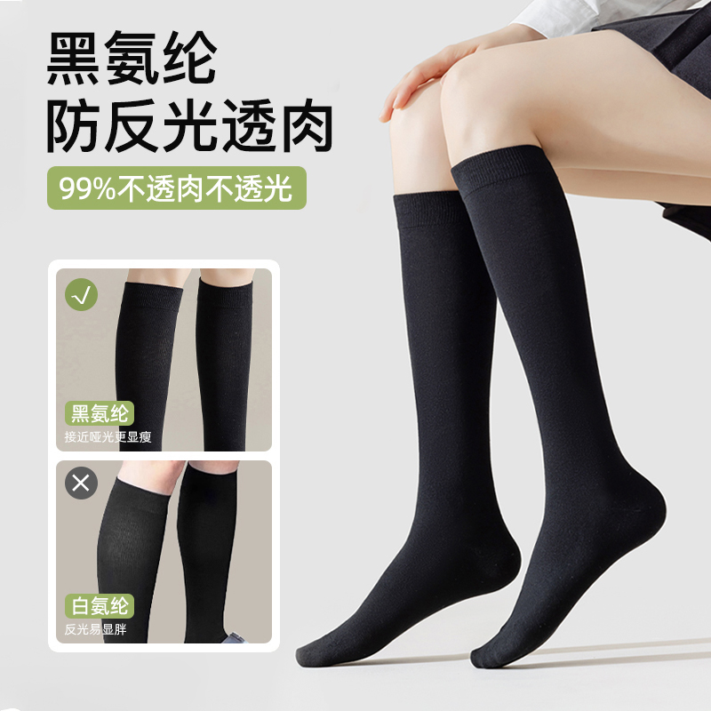 压力小腿袜女春秋强压显瘦腿jk袜子半截中筒高筒袜黑色过膝长筒袜