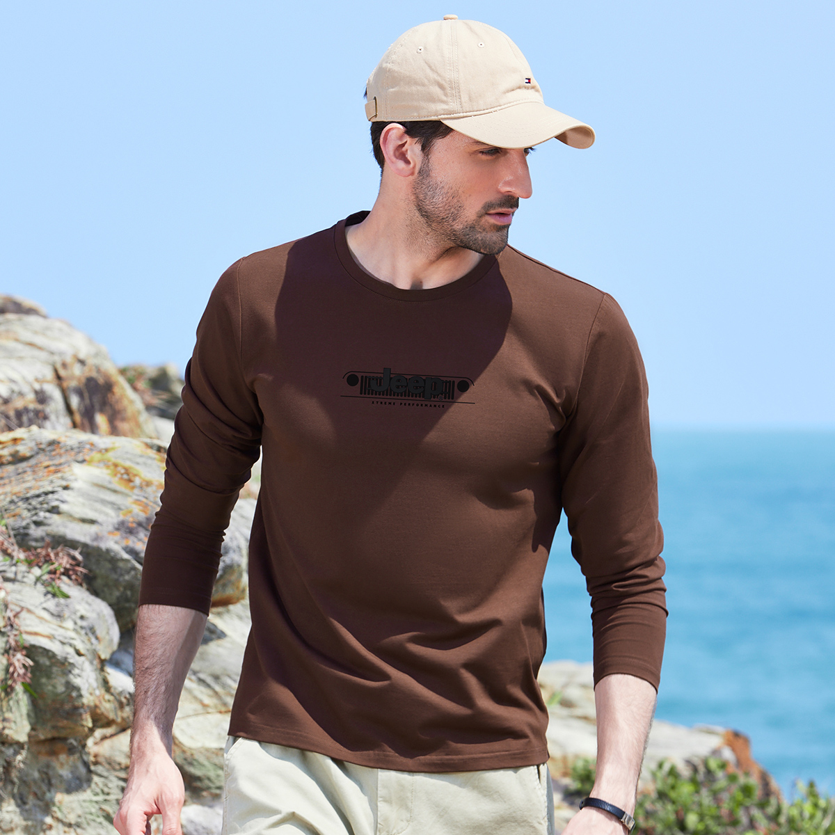 潮流印花t恤长袖 新款 男宽松户外运动T恤 吉普新疆长绒棉秋季 JEEP